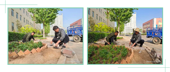 今年新冠肺炎疫情以来,学校人数少了,管道工作量相对来说也少了,但校园防控工作量非常之大。李春亮带领他的伙伴们,除了做好正常的本职工作外,都积极参与到校园防疫消杀、防疫物资搬运、库房修整、临时隔离间布设等项工作中。同时参与春季绿化大会战,重点包揽了交流中心北侧、2号教学楼南侧土地平整和图书楼北侧花砖铺设及花池造型施工,累计工作面1500平米。