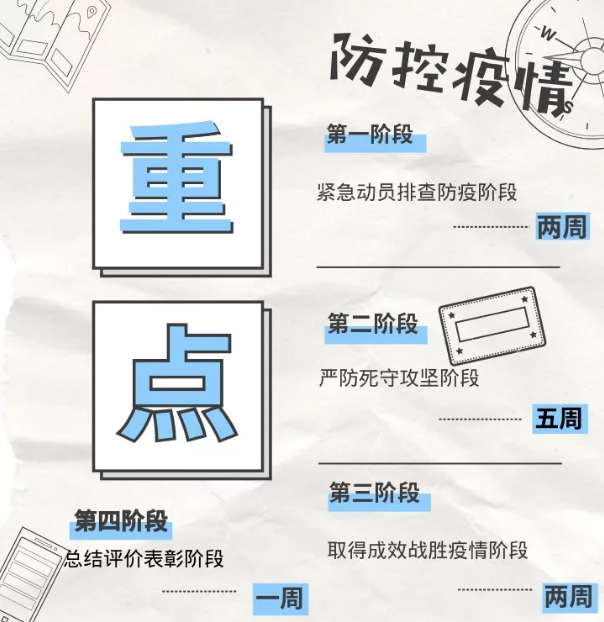 校长宋兴航首先做重要讲话。 针对此次防控疫情工作,我们的口号是: 积极行动,团结协作,勇于担责,精准施策,此疫必胜,取得战果。 宋校长从三方面进行了部署: 第一,从思想上高度重视。 目前防疫形势的严重,习近平总书记亲自挂帅指挥,李克强总理亲临现场,党中央、国务院高度重视; 大家要对疫情的爆发性、复杂性、反复性有充分的认识,提高政治站位,做好防疫工作。 第二,防御措施要得当。 既不恐慌操持过度,也不可不当回事、麻痹大意; 要在师生的健康和生命安全上下工夫,对外来人员做好管控排查,防御工作要张弛有度。 第三,具体措施要落实到位,本次防疫工作,分四个阶段: 1.紧急动员排查防疫阶段; 2.严防死守攻坚阶段; 3.取得成效战胜疫情阶段; 4.总结评价表彰阶段。