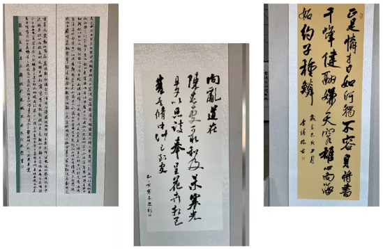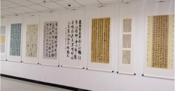书法系于12月24日在图书馆6层大厅举办“拾古刻今·迎新年 ” 书画雕刻作品展。 本次展览选裱作业566幅包括行书、楷书、隶书、现当代书法、碑帖、人物画、花鸟画、雕刻等。