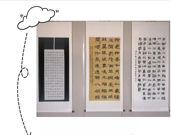 书法作品多以条屏的形式体现,有刚劲有力的楷书、有挥写自然的行书、结体匀整的篆书,古拙质朴的隶书,设计大胆的现当代书法......