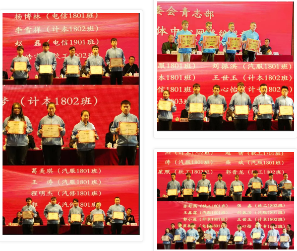 先进集体代表和优秀个人依次上台接受表彰,领取奖牌和荣誉证书。 全场师生以热烈的掌声向他们表示祝贺。