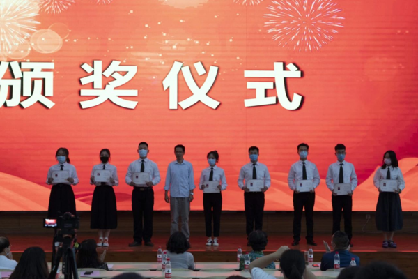活动中,学校领导为本届获奖的优秀学员颁奖,其中授予刘慧锋、聂晓楠等10位同学“学习能力奖”称号,授予肖纪朋、张朕桠等7位同学“创新能力奖”称号,授予石震乾、郭晓媛等7位同学“实践能力奖”称号,授予毕晨昕、赵琦等9位同学“组织能力奖”称号。在大数据词频《我和实验班的故事》环节,聂晓楠、吕嵩慧、赵欢等学生代表分别以态度、起航、坚持等讲述了在实验班的学习和生活,为表达对实验班的感恩之心,第四届实验班学子众筹佳能照相机一台。在典礼的最后,各处、各学院的领导对第四届“1+1”实验班学子进行了一句话勉励,鼓励同学们以此为起点,不负韶华,乘风破浪,坚定前行,成就自己,为科院争光,已经毕业的优秀校友也通过视频向第四届实验班学生表达了结业祝福。结业典礼结束后,学校领导与第四届实验班学生合影留念。