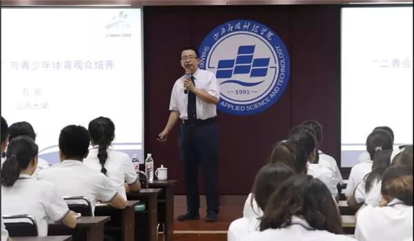 最后,石院长以“二青会与青少年体育观众的培养”为主题作出报告,他用自己在美国访学活动中看到的一些问题向大家提问,引出“部分比赛观众空无一人”的问题,并进一步论述了“观众素质问题的缺失与青少年观众的培养”的相关命题。他表示,目前我国体育竞赛也有“明星热”的现象,而且我国青年对体育竞赛的关注总体来说较低,观众素质也有待提升。针对这类问题的解决方案,石院长也进行了浅谈。他指出,要重点培养青少年的竞赛热情,要有长远眼光,不仅要重视当下,更要关注未来;要不断发展体育观众事业,逐步开发其经济价值、文化价值、社会价值、教育价值与传播价值,逐渐带动我省、我市的城市建设与经济发展。他强调,志愿者也是青少年,也要努力成为一名体育事业爱好者,大力支持体育竞技比赛,带动更多人去了解、去关注体育竞赛事业,为我市的体育事业建设与发展增光添彩。