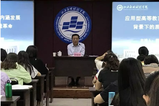 8月27日下午14点30分,山西省应用型高等学校联盟秘书长周晓明作“应用型高等教育内涵发展背景下的质量革命”专题讲座。周教授紧紧围绕“新高教40条”展开,从重视大学质量文化建设、重视课堂革命、重视教学模式的改革与创新三个方面切入,结合典型案例进行了详细讲解。