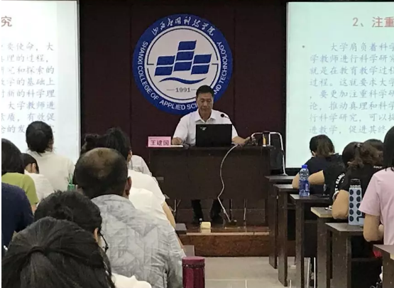 8月28日上午10点,教师发展中心邀请山西传媒学院原校长王建国教授作“如何做一名优秀的大学教师”专题讲座。王建国教授从教师的内涵与大学教师的特点、大学教师的专业化成长、优秀大学教师的职业素养、学院对教师的特殊要求等四个方面入手,详细阐述了如何做一名优秀的大学教师。他指出教师要了解学校、了解学生,根据学校的办学定位,拟定职业发展规划,把成长为“双师型”教师作为不断提升自己素质的目标。