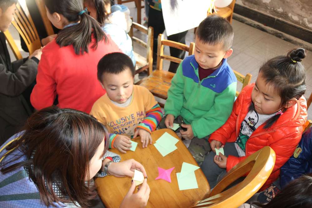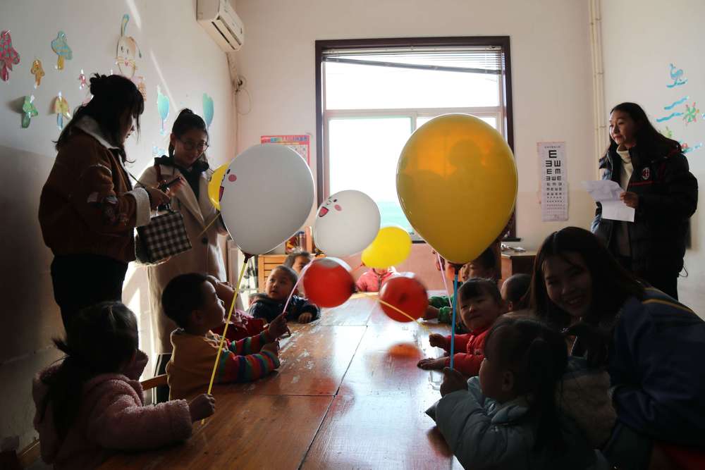 随后,同学们分别与孩子们交流,同学们各自与小朋友结对子、交朋友,与孩子们联络感情,教孩子们写字、画画、手工折纸、与孩子们玩游戏等,并为小朋友们分发他们带来的布娃娃、花样气球等礼物,彼此很快熟悉起来,为接下来亲密相处奠定了良好的基础。