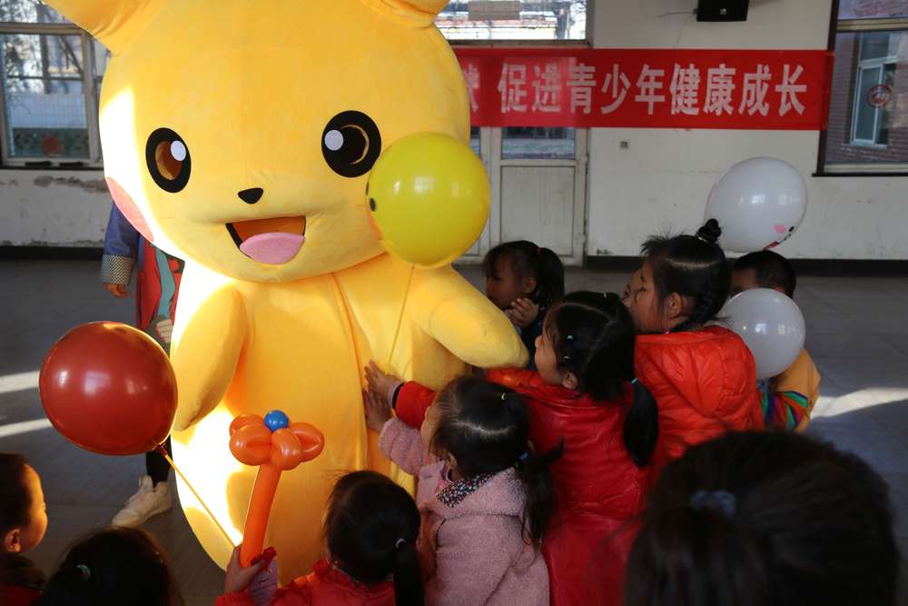 师生们为孩子们表演节目