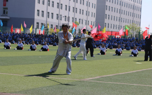 在裁判员和运动员代表庄严宣誓后,由师生编排的团体表演精彩亮相。健美操、团体操、武术、跆拳道、彩旗、扇子等轮番上演。他们用青春动感的音乐、明亮畅快的舞蹈、多样变换的队形以及别出心裁的创意高唱青春、点燃激情、为运动欢呼。