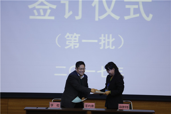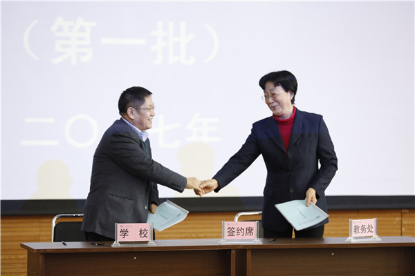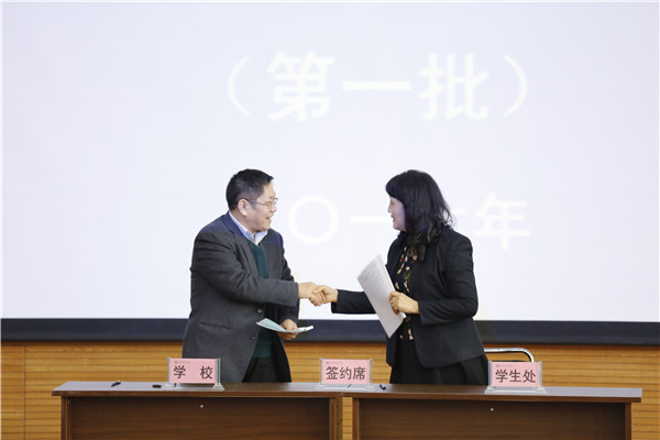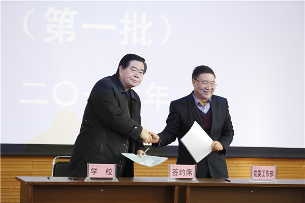 随后,宋校长讲话。他首先对新学期积极响应学校号召、首批完成目标责任书签约的10个部门表示了肯定,并对走在前列的10个部门给予了一定的奖励。宋校长希望未完成签约仪式的部门要抓紧时间,尽快完成本部门目标责任书的修改审定工作。宋校长指出,签订部门目标责任书就是为了给一年的工作划定起跑线,在即将来临的3月份鸣枪启动,奋力奔跑;部门目标责任书签订后,还要进一步分解落实,制定科室目标责任书,做到全校目标管理体系全覆盖。