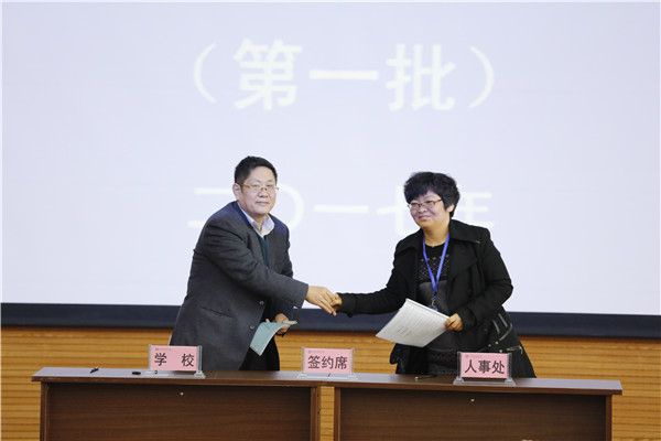 会上,教务处负责人康美娥、党委工作部主任武定远、学生处处长白香兰、科技处处长李俊晓、人事处负责人赵春霞、财务处负责人刘惠芳、实训就业处处长刘艳丽、建工学院副院长樊保、财经学院院长阎应福、基础教学部副主任宋惠萍先后畅读了本部门的目标责任书,在催人奋进的音乐和热烈的掌声中,签约仪式顺利完成。