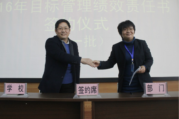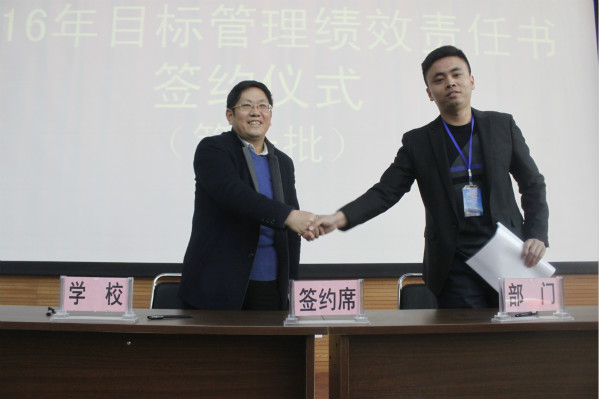 2月26日上午,Beat365官网在学术报告厅举行2016年度第一批部门目标管理绩效考核责任书签约仪式。校长宋兴航,科研副校长王复兴,教学副校长嵇建珍,校务督学李维生,党委副书记、校长助理原美荣,副校长杨力彬,校区督学梁福有,副校长张光星,教指委常务副主任周全寿,校长助理贺有,校务委员阎应福、米万锁、常永翔和全校教职工参加了签约仪式,签约仪式由校务督学李维生主持。