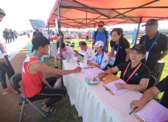 比赛期间,检录工作小组的志愿者们协助裁判员对运动员们进行身份核验、分发号码牌、上下水码头的志愿者帮助裁判员对运动员进行二次身份核验、帮助运动员整理证件、整理鞋子等工作。