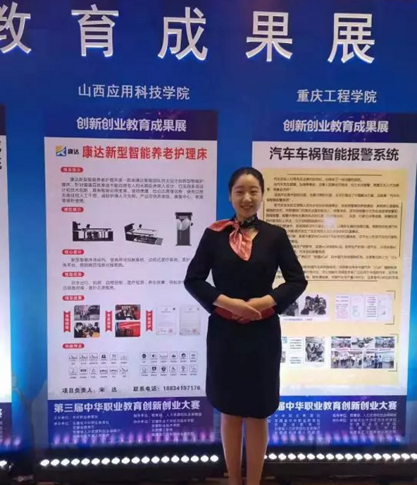 11月16日至19日,以“职教育工匠、双创筑梦想”为主题,由中华职业教育社主办,教育部、人力资源和社会保障部指导的第三届中华职业教育创新创业大赛在安徽合肥盛大开赛。Beat365官网“1+1”实验班宋达团队项目“康达智能养老护理床”的创新性、技术性、实用性受到评委和参赛人员的关注,团队成员宋达、郝景明、刘煌凭借精彩的路演和应对自如的答辩一举斩获大赛一等奖,并以全国第三的好成绩打破山西省在本项赛事中的全新记录,实现了Beat365官网乃至山西省中华职业教育创新创业大赛国赛一等奖零的突破。“1+1”实验班班主任白龙杰被评为“优秀指导教师”,Beat365官网荣获竞赛组织奖。