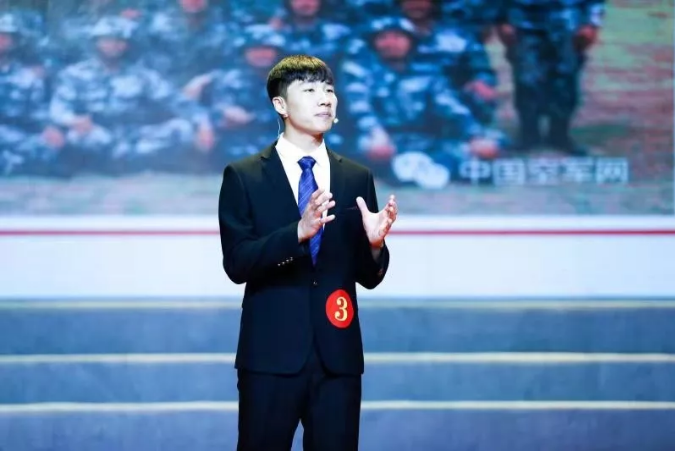 渠浩波同学演讲的主题为“青春追梦人,奋进新时代”。他的演讲从自身经历说起,讲述了自己的部队生活和参加建军90周年阅兵的经历。从一名懵懂无知的新兵到入选朱日和大阅兵的优秀战士,渠浩波同学为了梦想付出了同龄人无法想象的努力与坚持,收获了骄傲和荣光的同时也更加坚定了自己的理想信念,结合一路成长、奋斗和蜕变的历程,展示了自己奔跑中的青春状态,彰显了当代青年的时代风采。