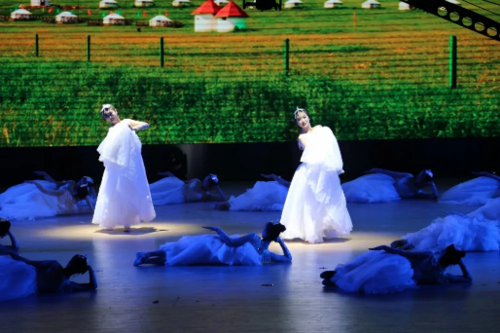 《额尔古纳河》由一群身着洁白裙子的姑娘,让人眼前浮现出蒙古女孩与草原的水、和额尔古纳河之间的关系,以展现蒙古族的女子外表柔美、内心坚强的性格。