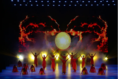 晚会在《盛世欢歌》开场舞下拉开序幕,红黄相间的配色点燃了整场晚会。红红的腰带,嘹亮的鼓声。在这节日盛装映衬下显得更红、更亮。在这个喜庆的节日让我们大家腾起来,跃起来!
