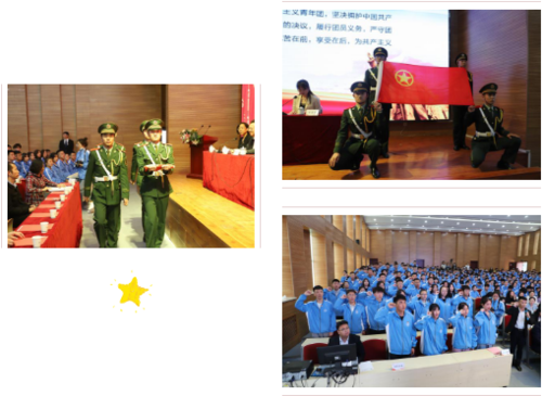 国旗护卫队成员迈着铿锵的步伐,手握团旗,意气风发,站定后,由校团委书记郭智博带领新团员入团宣誓,耳边的右拳是他们的信念,嘹亮的声音是他们的誓言,在他们稚嫩却又坚定的眼睛里尽是对青春奋斗的期许。