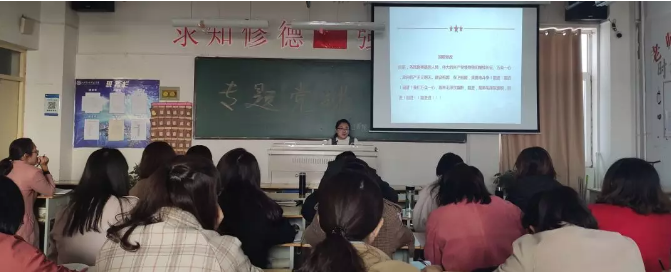 李俊晓处长以ppt的形式,从“牢固树立危机意识是共产党人永不懈怠的助推器”这一主题出发,由增强“四个自信”为依据,强调了全体教师应该牢固树立危机意识,永不懈怠是我们党不断从胜利走向新胜利的重要法宝。