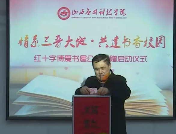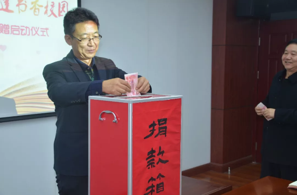 校督学、公益捐赠领导组组长张政宣读捐赠活动倡议书,他倡议全校师生积极响应山西省红十字会在全省开展“情系三晋大地 共建书香校园”红十字博爱书屋公益捐赠活动号召,助学帮困、相互帮扶,播下爱的种子,绽放爱的花蕾,结出爱的硕果,“情系三晋大地”“共建书香校园”。