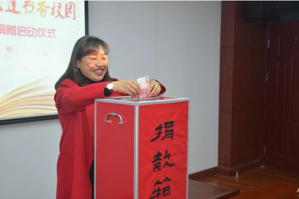 党委副书记、副校长、公益捐赠领导组副组长原美荣宣布公益捐赠活动规则,并宣布捐赠仪式开始。以深入贯彻落实党中央“不忘初心、牢记使命”主题教育精神为引导,大力弘扬传播“人道、博爱、奉献”的红十字精神,践行“精准扶贫、文化先行”的理念,校领导组、校务委员怀揣爱心与希望,先后有序募捐,助力青少年健康成长、成才圆梦。