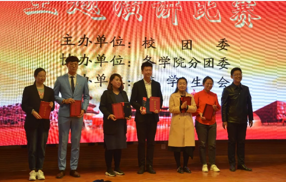 经过激烈角逐,靳令东同学的演讲征服了全场观众以及所有的评委老师,并在19名 参赛选手中脱颖而出,最终获得比赛一等奖及最佳人气奖。 同时,本次比赛共评比出二等奖2名,三等奖3名,优秀奖13名,由校领导及参会评委进行颁奖。