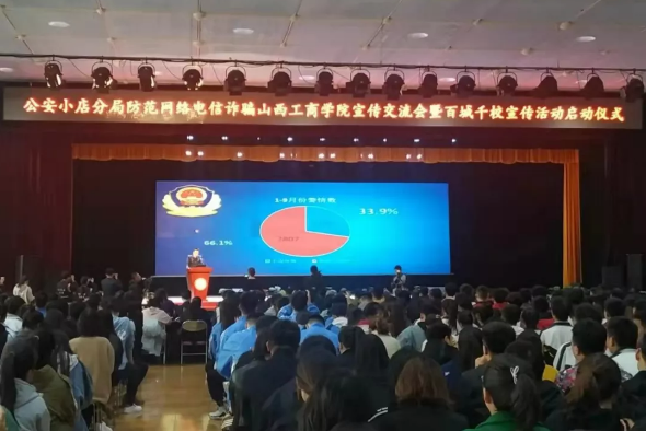 会上,太原市公安局小店分局民警做了高校防范网络电信诈骗专题辅导。 他用活生生的案例和详尽的数据,为同学们介绍了高校易发频发的网络电信诈骗类型以及防范方法,提醒同学们切记“贪”“贪利”“贪小利”。 令人震惊,发人深省。