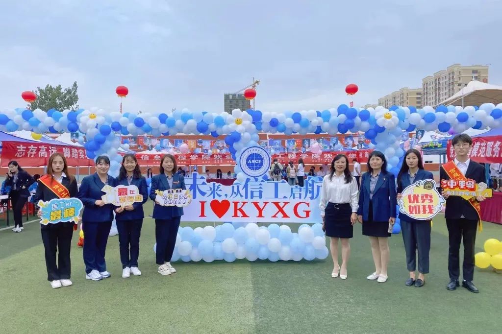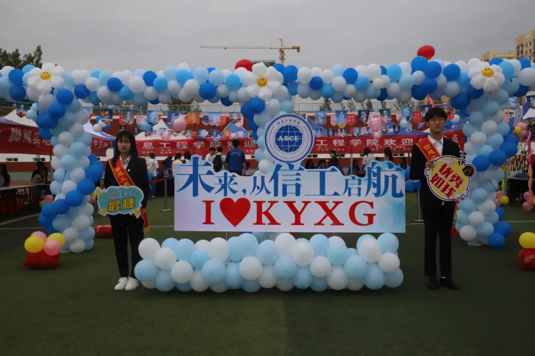 信息工程学院以“未来,从信工启航”为主题,以蓝白气球营造梦想,加入精心制作的励志小吊旗、寄语墙、指路牌、迎新四面刀旗、拍照打卡签到墙等多种元素。在引导新生按照专业办理手续时,充分展示信工教学成果、优秀学子风采等。配以动感的快闪舞蹈吸引新生家长驻足观看。