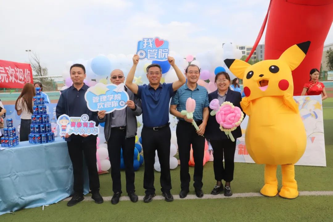 管理学院以“4+1”尽展管理的迎新热情。“4”为展示区(优秀毕业生展、专业作品展、寄语风铃、第二课堂活动照)、活动区(以“心”迎新展板、百福具臻盲盒抽奖)、礼仪(酒管专业)、舞蹈(古典与现代舞的结合);“1”为党总支书记致新生一封信。