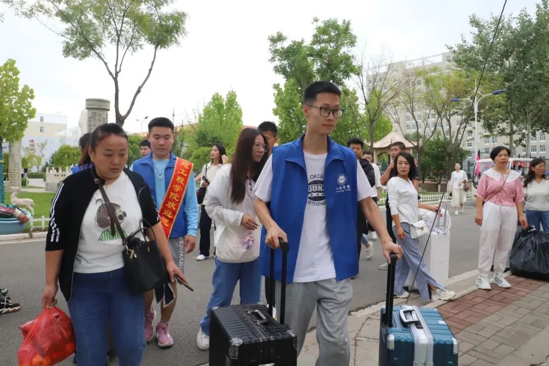 由各学院学哥学姐组成的志愿者们热情地接待小萌新。开学前,志愿者们就在各学院领导和教师的带领下为新生铺设床铺,准备生活用具等,新生公寓物品如被子、褥子、床垫、枕头、床单、被罩等早在他们昼夜奋战挥汗如雨下提前按照学院楼层宿号床号放置好。报到当日,他们穿着各学院统一的志愿服在校园里穿梭往返不停。这些学哥学姐的志愿者们,他们热情细心地引导新生完成报到流程,帮助搬运行李,并积极介绍校园环境,分享大学生活经验,气氛如火如荼。