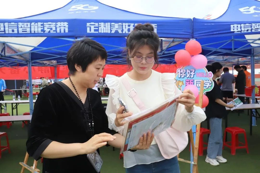 在健翔体育活动中心以及西区教学楼前设立的八个二级学院接待处,既是小萌新们学院班级报到处,亦是各二级学院再次向小萌新们展示自身特色亮点的舞台。这里,八大学院的老师及学长学姐们共同出谋划策,他们结合自身的专业特色和亮点,融入了各种元素,力求全面展示自身学院特色和科院风采。