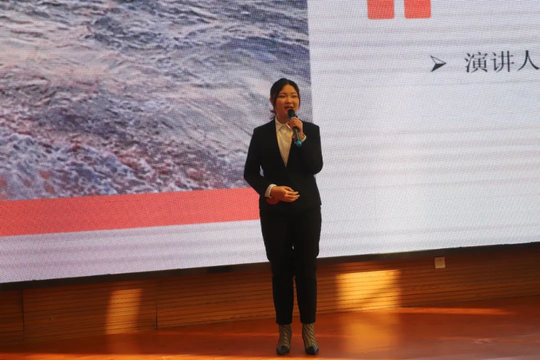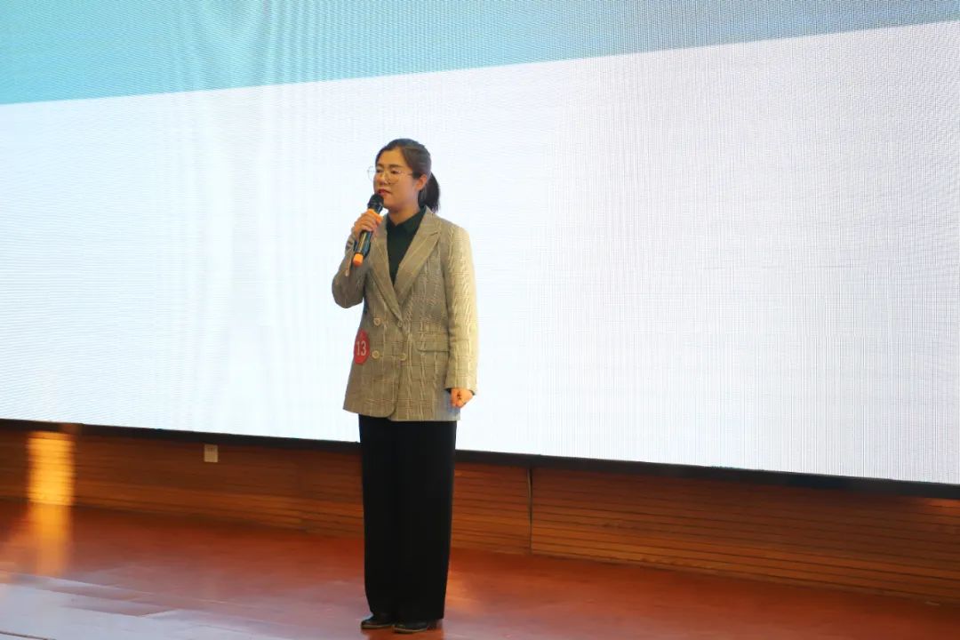 物业公司干事王嘉瑾以“树”作喻,讲述了在科院学习、工作、成家的故事,向往做一颗向阳而生,蓬勃发展的常青树扎根科院。朴实的语言、真挚的情感引起现场人员共鸣,赢得了阵阵掌声。