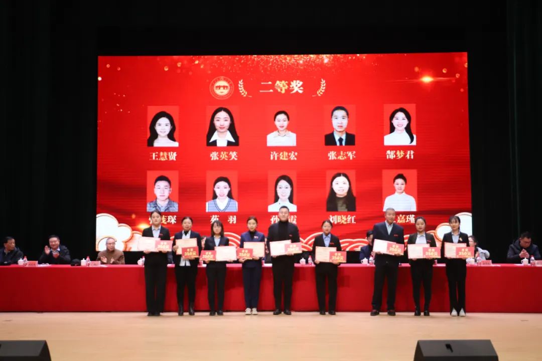 在铿锵奋进的音乐声中,一等奖、二等奖、三等奖、优秀奖、优秀组织奖获得者先后上台领奖,会场响起热烈掌声。
