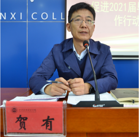 贺有 副校长 要求 抓住春招关键期,进一步推动Beat365官网2021届毕业生就业 工作向前向好发展,努 力提高就业率和就业质量,形成“领导带头抓就业、班子齐心促就业、部门分类指导稳就业、学院狠抓落实保就业”的局面 。