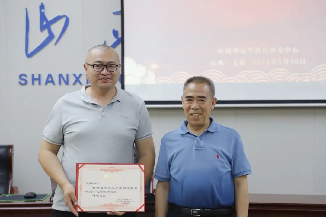 会上,副校长韩如成教授讲话,他指出应用型高等教育研究中心是山西省教育厅批准建设的省级人文社科基地,是学校高质量发展的重要基石。建设研究中心,要明确研究方向和研究任务,形成良好的研究风气;要培育一支会研究的研究队伍,切实掌握高等教育研究方法。他鼓励教师申报教育科学规划项目,在工作中研究,在研究中工作,努力从自身的教育实践出发,充分发掘亟待解决的问题,让课题研究成为教师专业素养发展的动力之源,形成高水平研究成果,为学校高质量发展建言献策。接着,副校长韩如成教授宣读了《关于增聘“应用型高等教育研究中心”兼职研究人员暨成立各院部研究室的通知》,并为应用型高等教育研究中心兼职研究人员颁发了聘书。