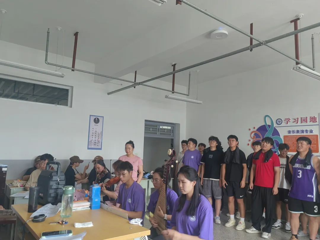 音乐表演专业的学生们,将山西民歌与小曲小调作为研习的重点,从《走西口》的深情款款到《桃花红杏花白》的清新脱俗,他们用心感受每一句歌词背后的故事,用指尖的跳跃在乐器上勾勒出山西大地的风土人情。在集中训练中,他们反复推敲旋律的起伏,力求每一个音符都能精准传达出山西民歌的独特韵味。分组排练时,更是将个人情感融入集体演奏中,让音乐成为连接过去与现在的桥梁,展现出山西文化的深厚底蕴。