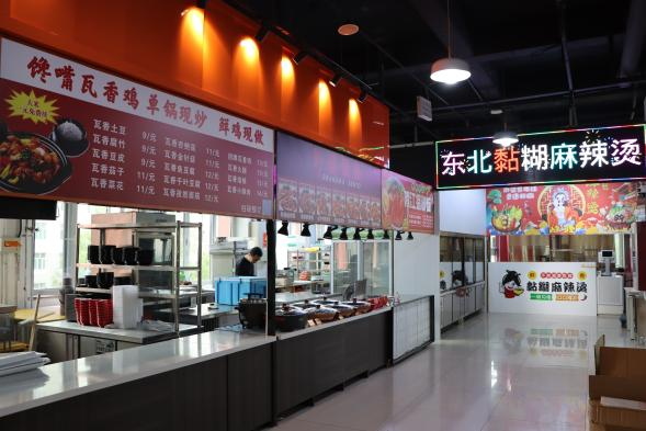 为给学生提供一个全新的餐厅环境,物业公司联动各餐饮公司对基础设施进行维护,尤其是筹措资金下大力气解决了后厨、操作间、卫生间、厨房等多区域漏水问题,更新了更衣间、回餐区,根治了私拉乱接等安全隐患。同时全面提升了食堂的“软实力”,与国家二级厨师长带领的先进管理团队紧密合作,提升管理水平,同时引入了塔斯汀中国汉堡、德克士等多家餐饮品牌,并以“集团化全局数字管理”为核心,搭建了一套智慧用餐管理系统,实现对食堂前厅后厨的规范化、科学化管理。