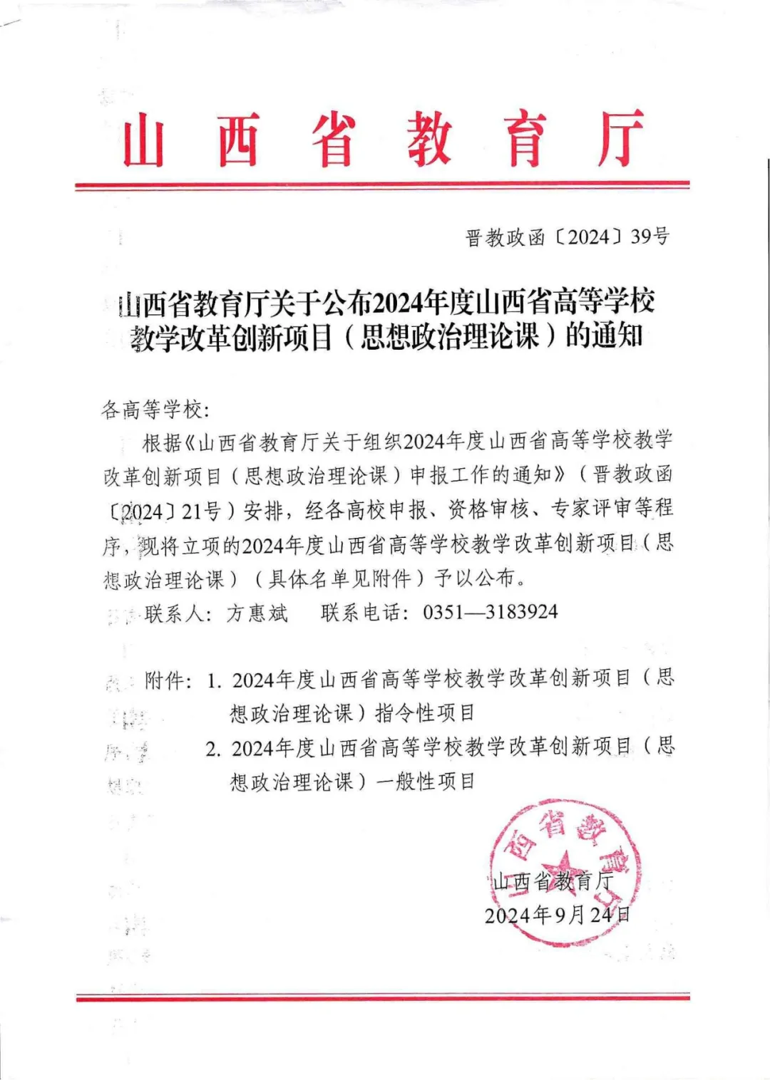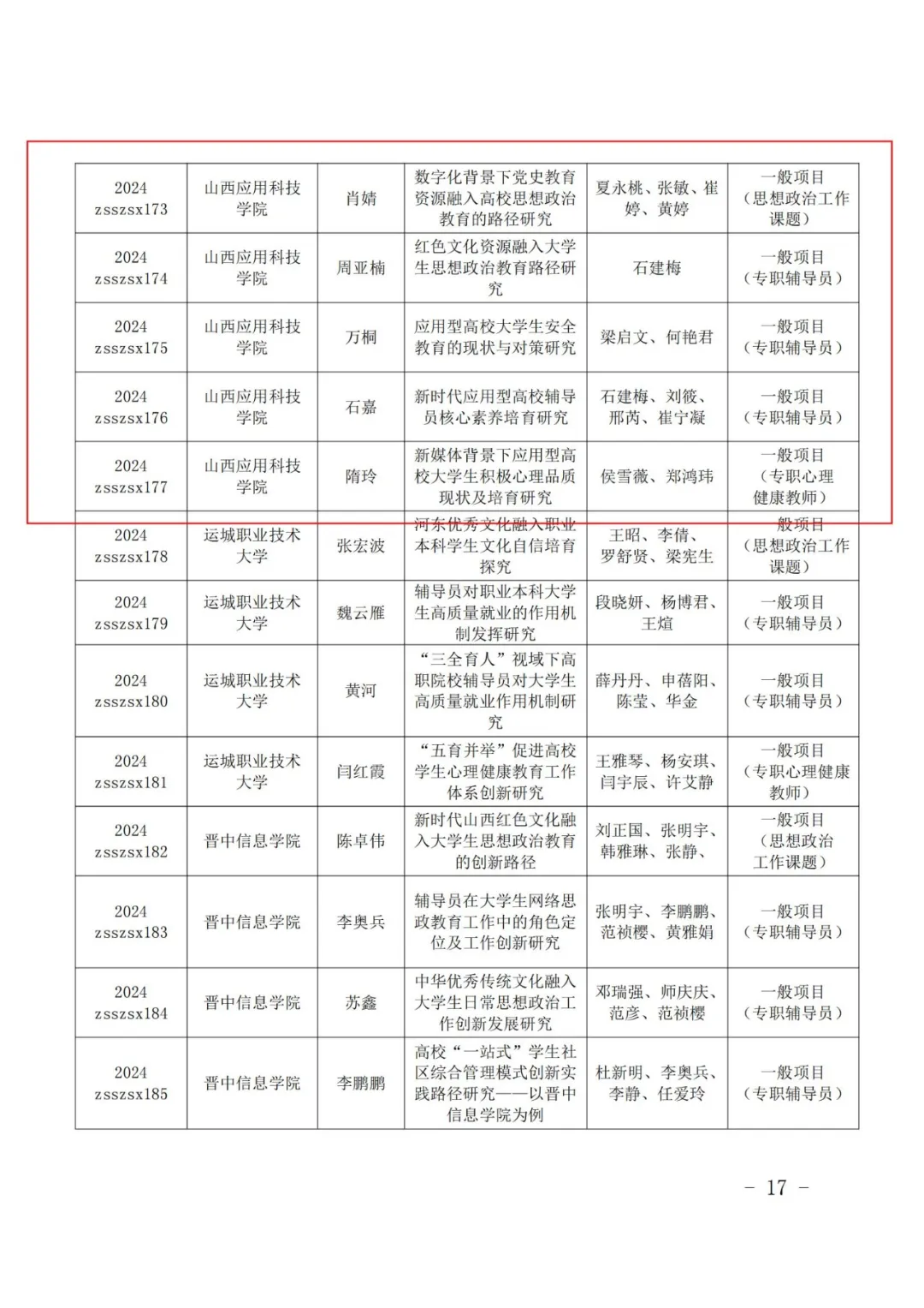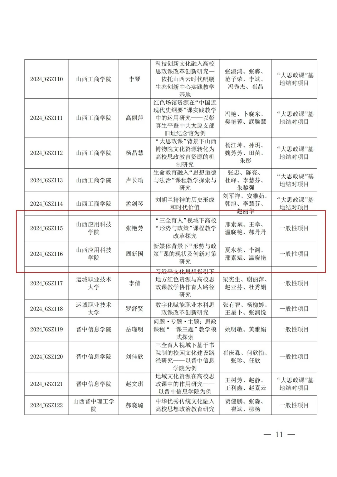 近日,山西省教育厅公布了“2024年度山西省高等学校教学改革创新项目(思想政治理论课)”和“2024年度山西省高等学校哲学社会科学研究项目(思想政治教育专项)”立项名单,Beat365官网有2项教学改革创新项目(思想政治理论课)和5项哲学社会科学研究项目(思想政治教育专项)成功立项。