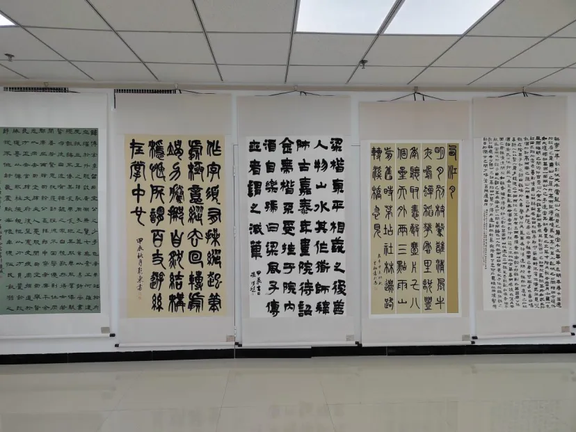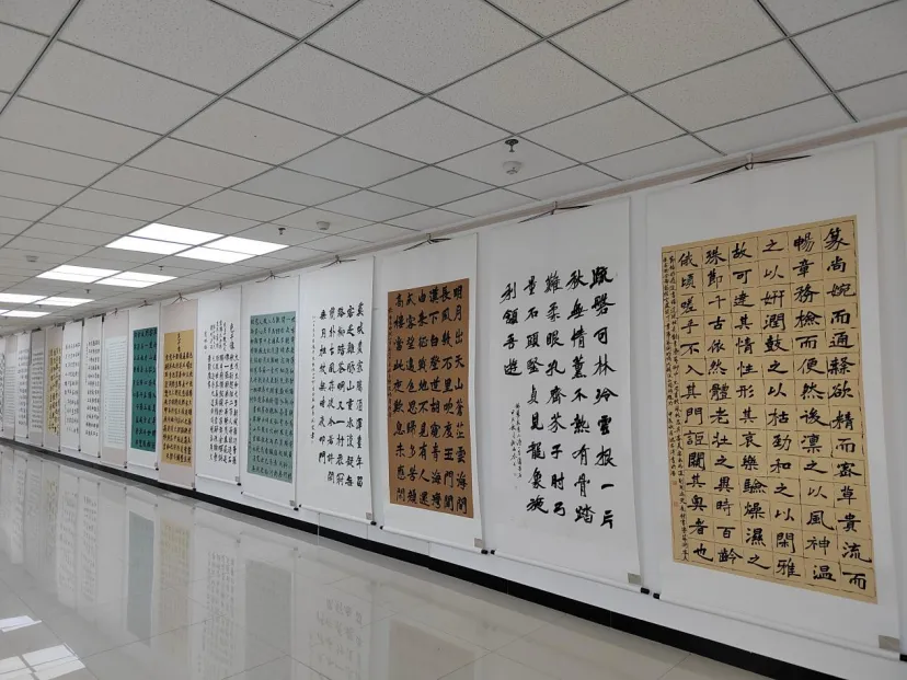二零二一级共一百三十六位同学,将考察所得凝炼为翰墨笔迹,聆听金石雅音。此次展出的书法作品取法古人,慕追经典,篆、隶、楷、行、草五体纷呈,妙趣横生,这些作品不仅是对传统的继承,更是对创新的探索,是同学们将考察经历转化为实践成果的见证。不仅提升了学生的个人书法审美和创新能力,也为学院学科的多元化建设和书法研习的拓展提供了更广阔的空间。书法学专业亦不断于实践中探索学书新路,坚定专业建设发展目标,不断立德精进。
