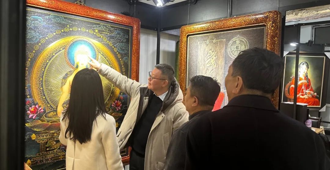 臧新明院长现场展示了可国际化的文化IP矩阵:既有彰显东方美学的珐琅掐丝工艺,又有现代水墨画艺术,更有可产业化的非遗剪纸数据库。