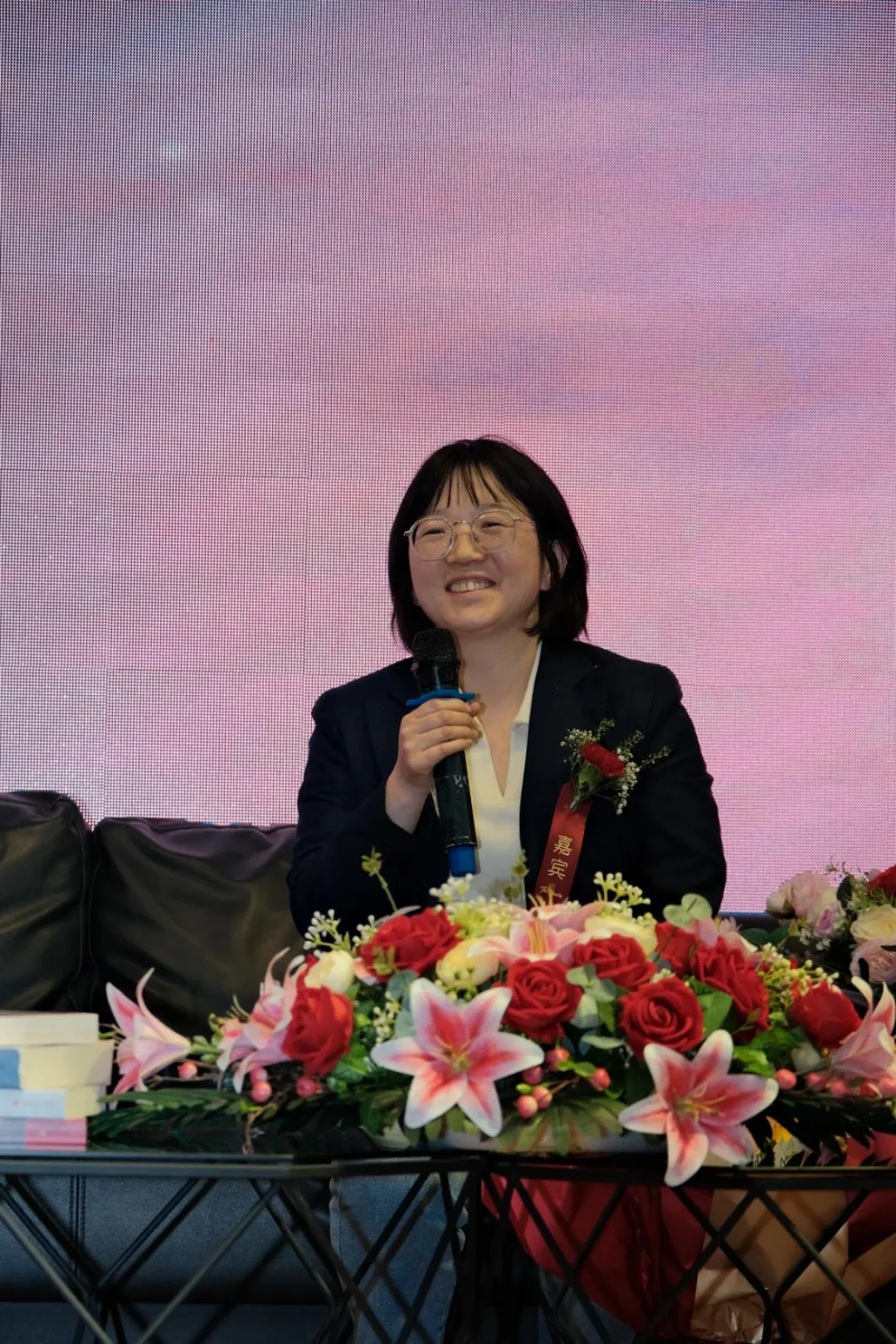 整个访谈现场掌声不断、气氛热烈。在全场师生高唱《再回首》的歌声中,访谈节目落下帷幕。