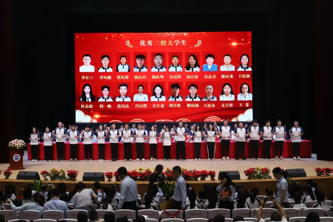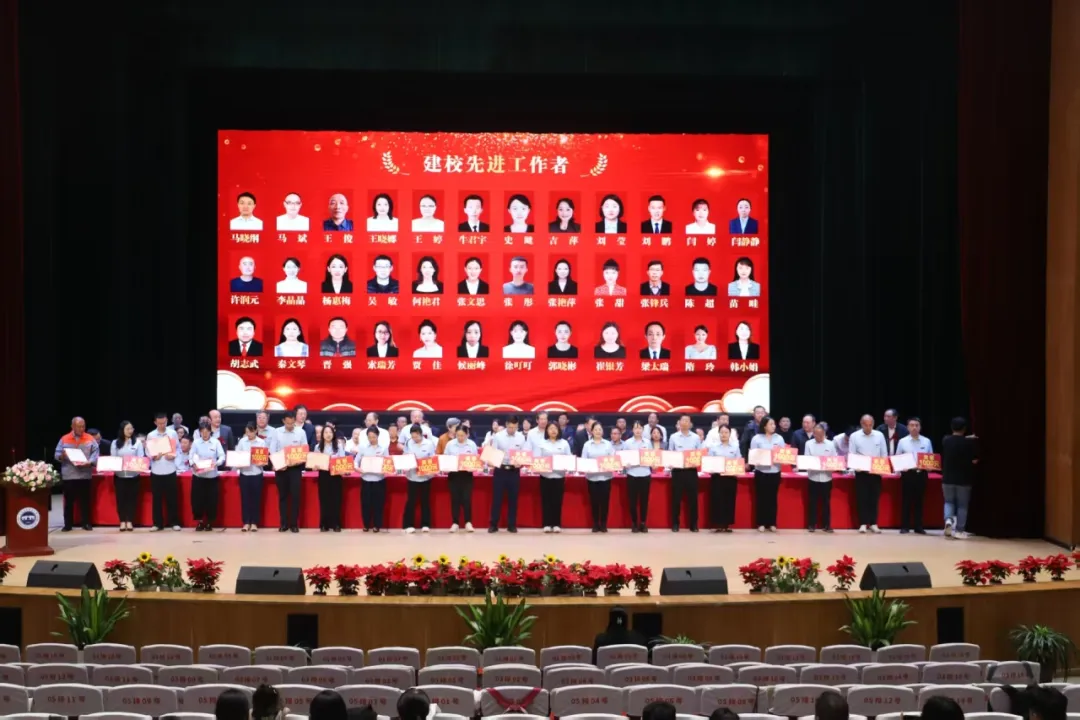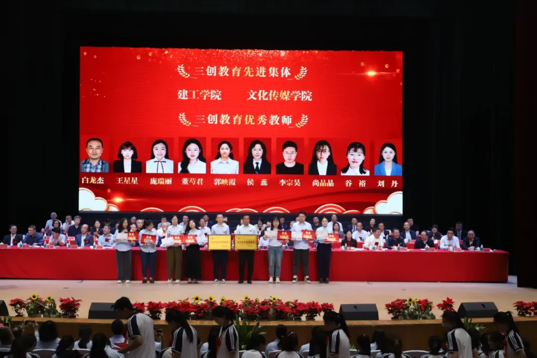 在欢快的音乐声中,主席台领导和嘉宾为“建校先进工作者”“优秀学生”“三创教育”获得者颁发了奖励和荣誉证书。