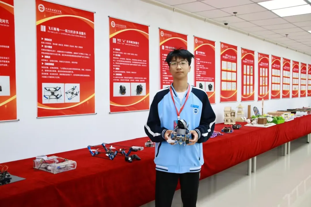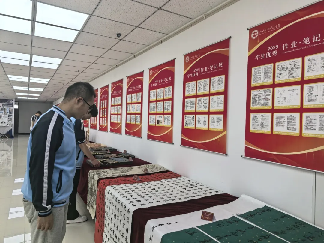 “教学科研成果”则集中展出了近年来学校在人才培养、学科竞赛、产学研融合等方面取得的突破性成果。“小发明小创造节”获奖作品、学生课堂笔记、学生课堂作业、学生匠心创作的艺术作品等实物陈列,凸显了学校“三创教育”的育人特色。