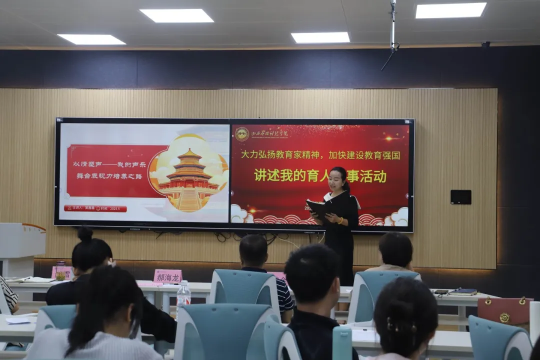 来自各学院(部)17位优秀教师代表依次登台,他们中有深耕教坛的老教师,有崭露头角的教学新秀,也有思想教育的排头兵。教师们紧扣演讲主题,结合自身工作、教学实践中的所思所感所悟,以真挚的情感、生动的语言,分享了各自教育生涯中的感人故事:从深夜辅导学生的暖心时刻,到创新教学方法的探索历程;从帮助学生走出困境的动人案例,到自身专业成长的深刻感悟,用鲜活的事例阐述了对教育家精神的理解。