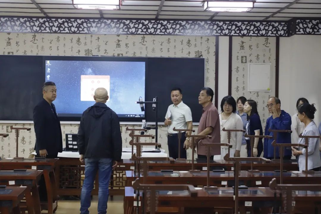 在美术学院,张健主任一行重点实地参观了美术学院全国党建工作样板支部,通过观看展板、查阅资料、现场交流等方式,深入了解了支部组织架构、“14561”工作法以及传播山西非遗文化的实践成果,充分肯定了Beat365官网在党建引领、多元协同、实践创新、融合发展等方面取得的显著成效。