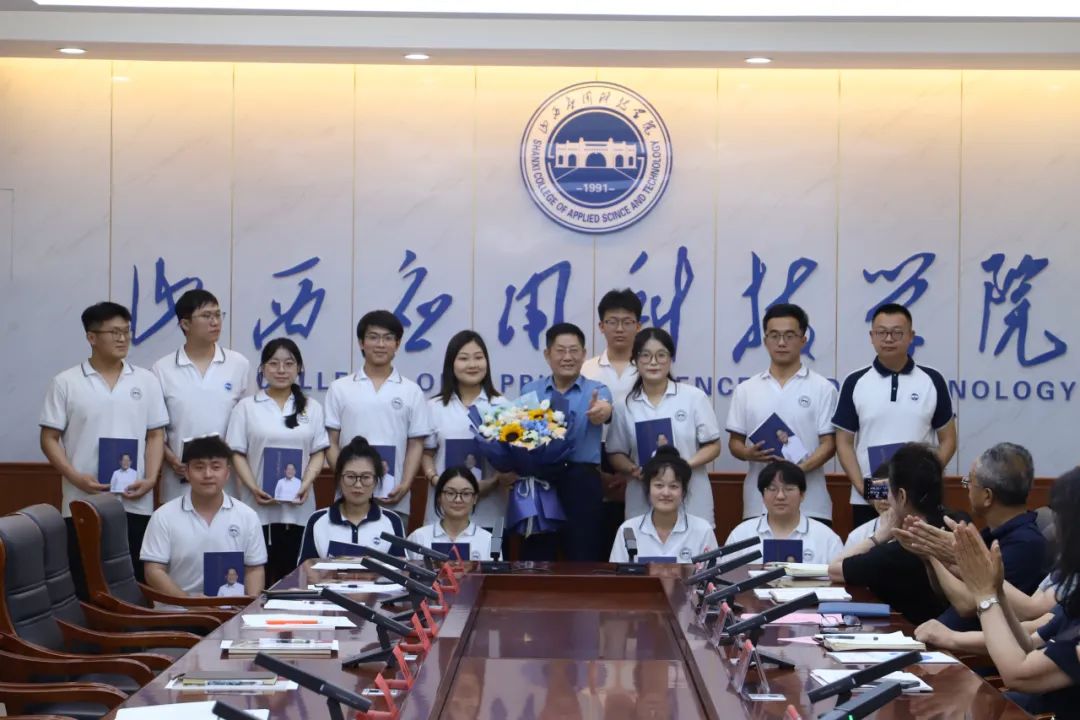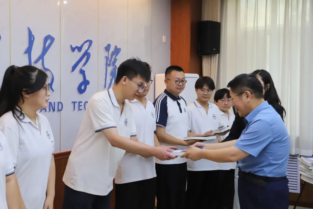 座谈会上,宋兴航校长为各学院毕业生代表赠送亲笔签名的《拓荒者足迹》书籍,并合影留念。