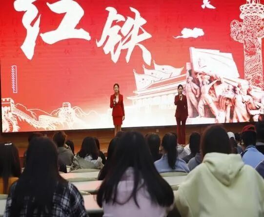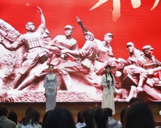 热情的互动结束,康李怡宁、郝温馨带来的《红铁》与随后丁悦、段郡尹朗诵的《不朽》,以深沉而炽热的情感,致敬了那些在烽火岁月中铸就不朽功勋的英雄先烈。他们的声音如同不灭的火焰,点燃了现场的爱国情怀,令人热血沸腾又肃然起敬。