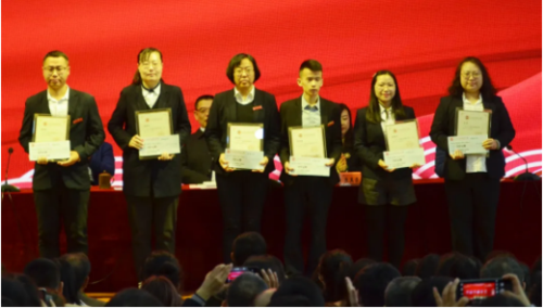 ▲“2020年度模范干部”获得者上台领奖