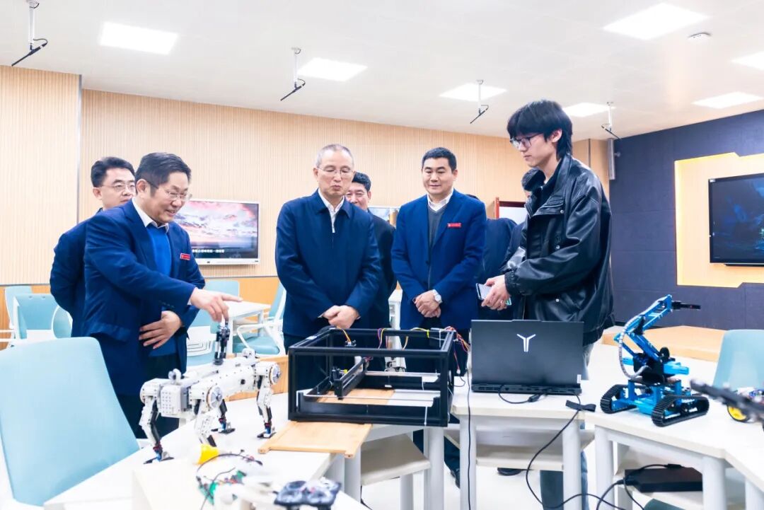 雨后初霁的科院清新宜人。张春林来到学校修建性详规沙盘展示区与智慧教室,在宋兴航校长的细致讲解下,深入了解了学校整体规划布局、基础设施建设及智慧化教学改革成果。张春林观看了学校11月15日即将举行的“小发明小创造节”作品,详细询问了学生所学专业和课程,对学校立足培养“应用工程师”的办学定位、主动服务地方和区域经济社会发展与文化繁荣的担当给予肯定,并强调要坚持以就业为导向,紧密对接社会发展与企业需求,不断优化学科专业结构,增强学生的实践能力和就业竞争力。