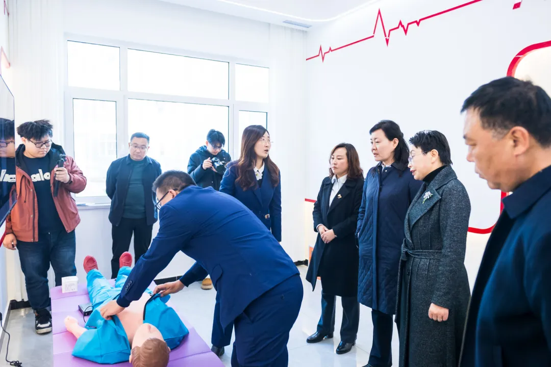 在西区同心苑社区,一站式学生社区的多元功能布局让考察组印象深刻。心理咨询室、急救教育工作室、情绪调解室、辅导员工作室、第二课堂功能室等设施的完备配置,彰显了学校“以学生为中心”的育人温度;启智教学楼与综合实训楼内,虚拟仿真、大数据健康管理、金融工程等实训场地,凸显了学校产教融合、知行合一的办学特色,其服务地方经济发展的实践经验,被考察组赞为“可借鉴、可推广”的宝贵范例。此外,考察组还参观了体育馆、学生餐厅、学术交流中心等场所,对学校在保障学生生活品质、促进学术交流方面的细致规划给予高度认同和称赞。