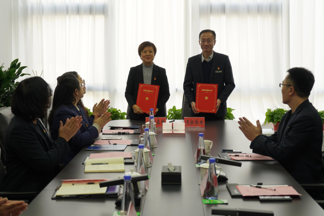 在与会人员的共同见证下,郝雪玲与侯磐分别代表双方签署了党建共建协议,并为“党建共建单位”揭牌,标志着双方党建共建工作迈出实质性步伐。